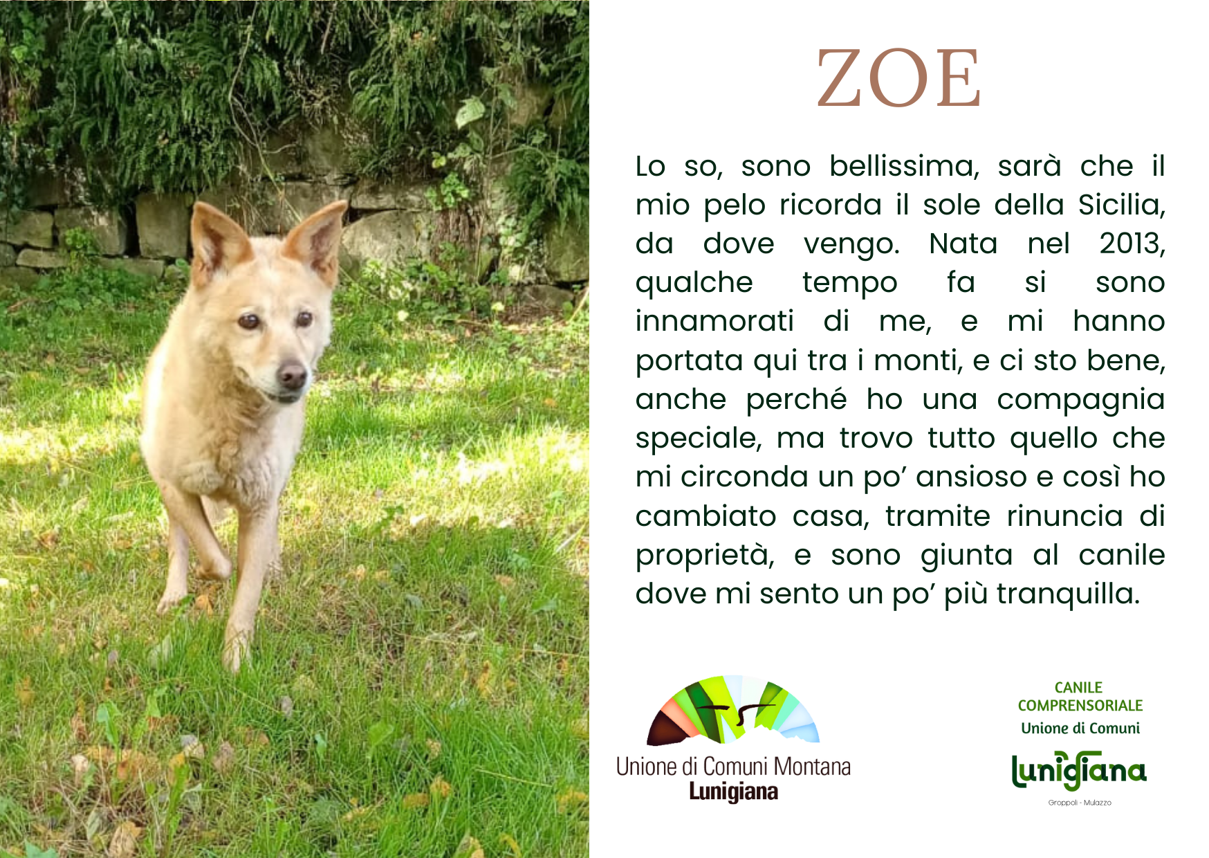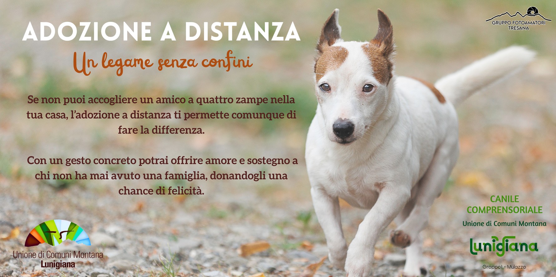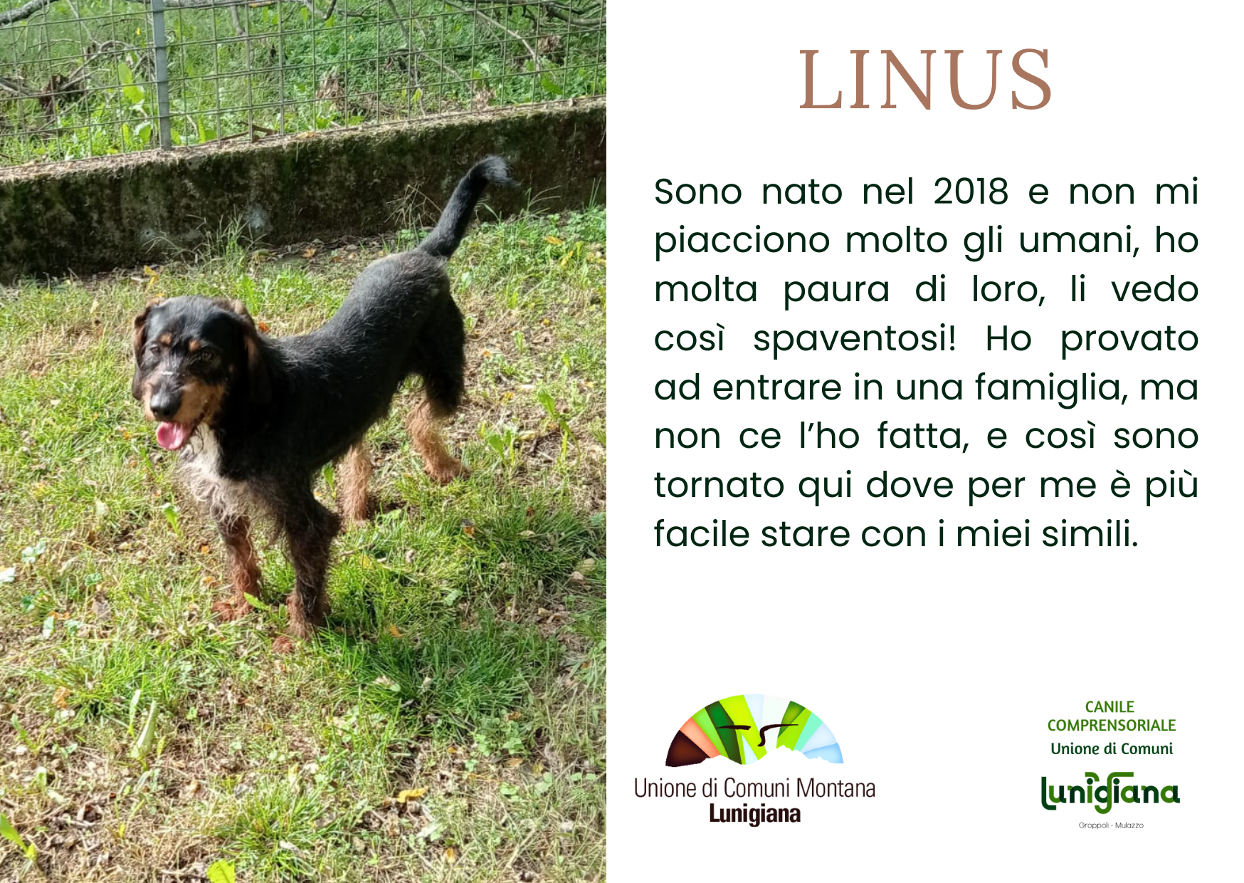 Scegli qui sotto il cagnolino che ti ha rubato il cuore, quindi procedi a fare un bonifico all’Unione di Comuni Montana Lunigiana con la cifra che più desideri.